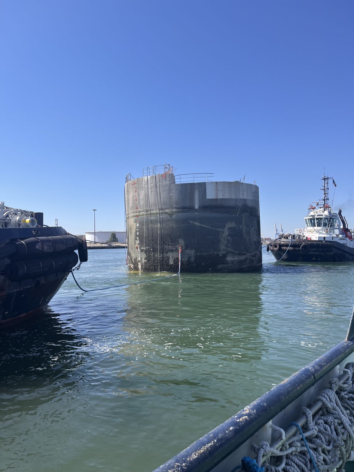 Nearly 4,800 tonnes were lifted using several refloating balloons, and she was then towed to the Osaka quay in an operation piloted and assisted by 3 tugs.